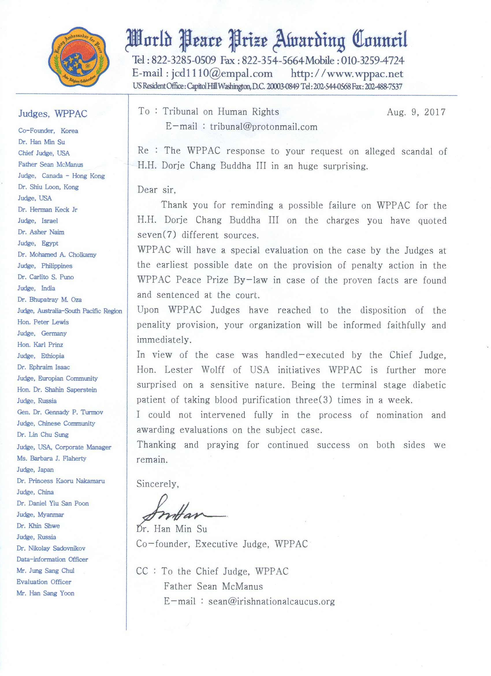 CASO 29-2017: WORLD PEACE PRIZE AWARDING COUNCIL (WPPAC)